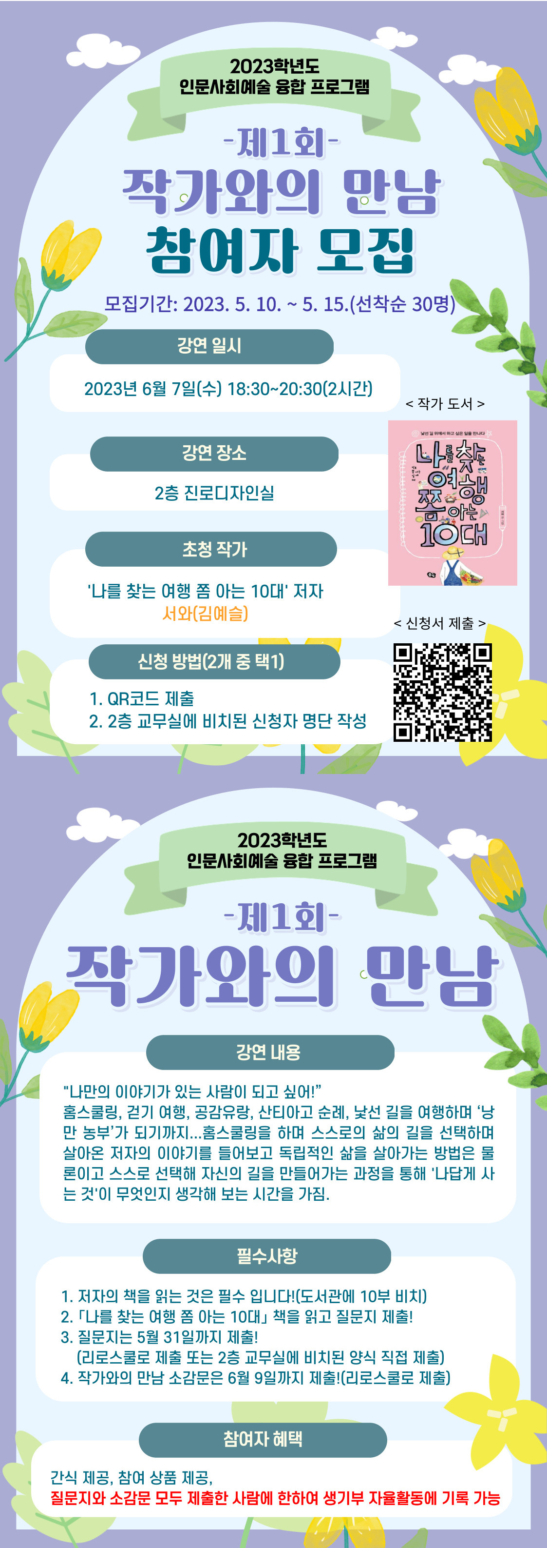 2023학년도 인문사회예술 융합 프로그램의 일환으로 제1회 작가와의 만남을 진행합니다.